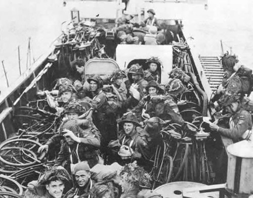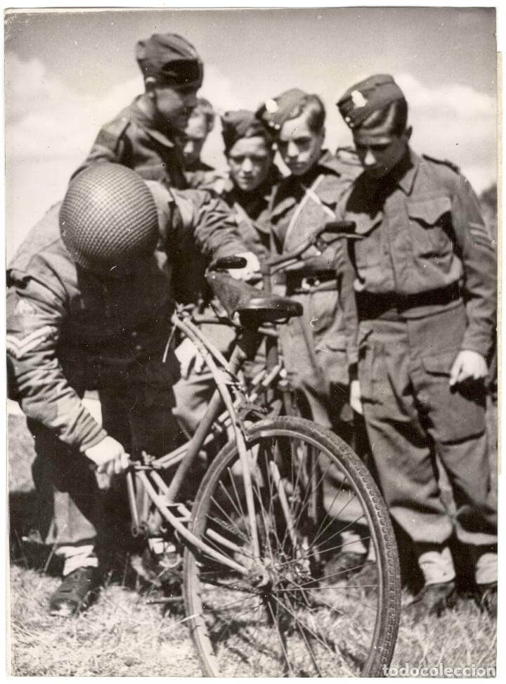 El modelo de bicicleta utilizado por franceses, británicos y canadienses para la Segunda Guerra Mundial era la BSA Airborne Folding Paratrooper Bicycle, se estima que fueron fabricadas más de 60.000 unidades entre el periodo de 1942 a 1945. Otra nota curiosa, fue el hecho de que la 9º Brigada de Infantería Canadiense desembarcó montados sobre sus bicicletas.